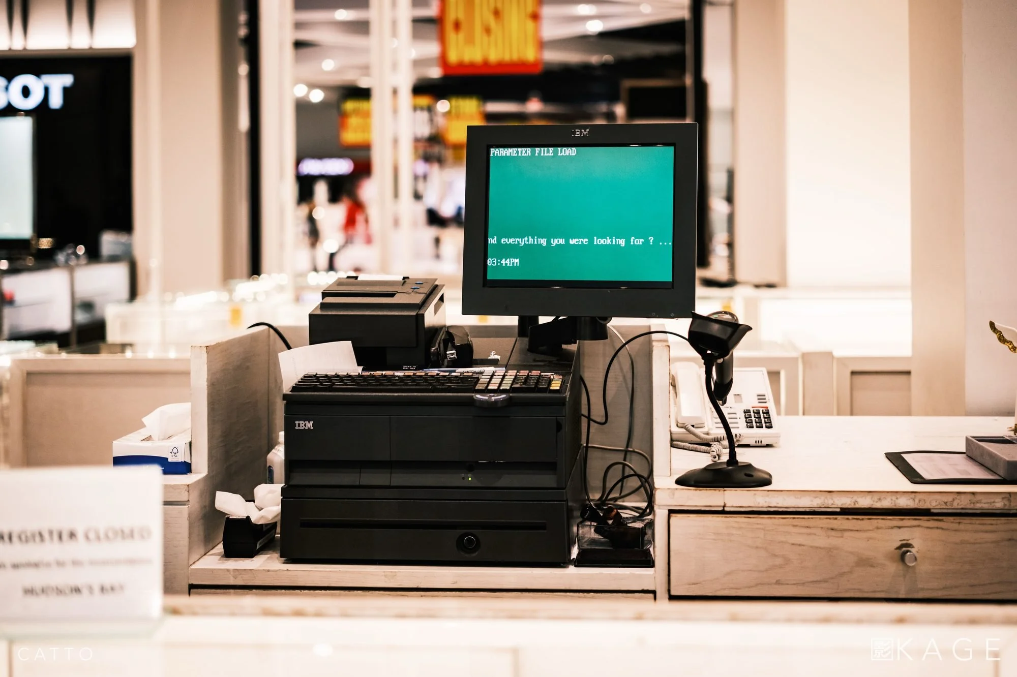 Rows of signs advertise that they themselves are for sale, never mind the goods that once stood alongside them. A cash register sits untended, plaintive text asking “did you find everything you’re looking for?”, and getting no answer.
